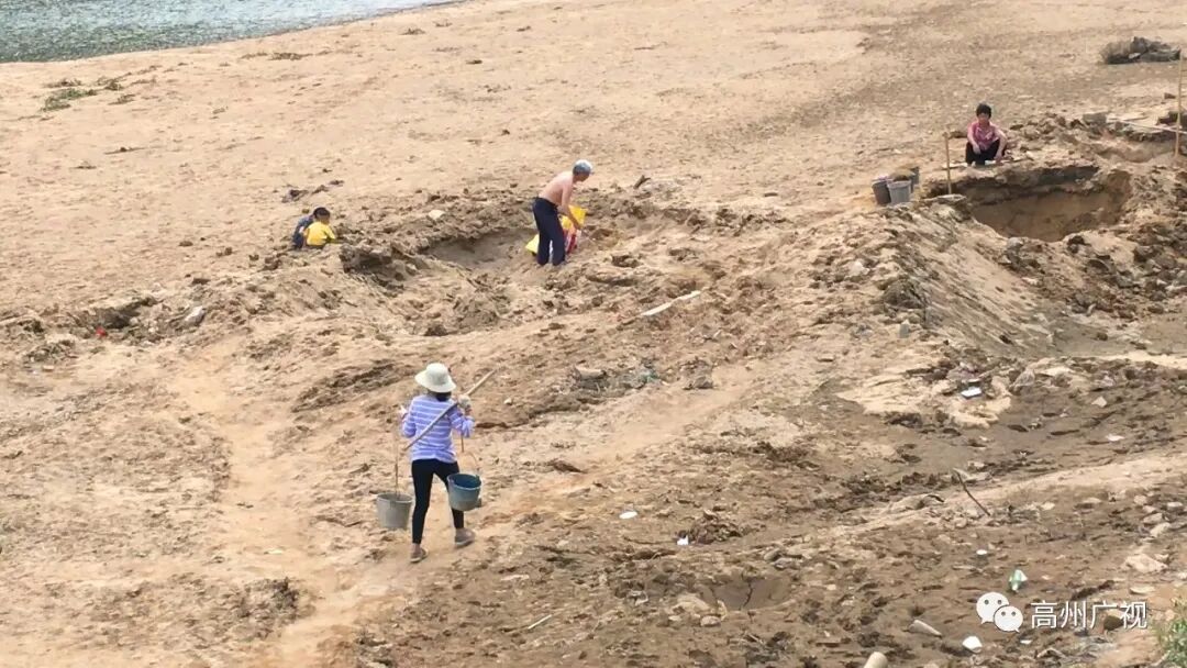 高州沿江西路段有人“蚂蚁搬家”式地盗采河砂, |